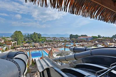 Op het buitenterrein van het hotel vind je een heerlijk zonneterras met ligbedjes en parasols, 2 zwembaden en een kinderbad. Daarnaast beschikt Atlantique Holiday Club over een aquapark met 11 waterglijbanen voor eindeloze waterpret.